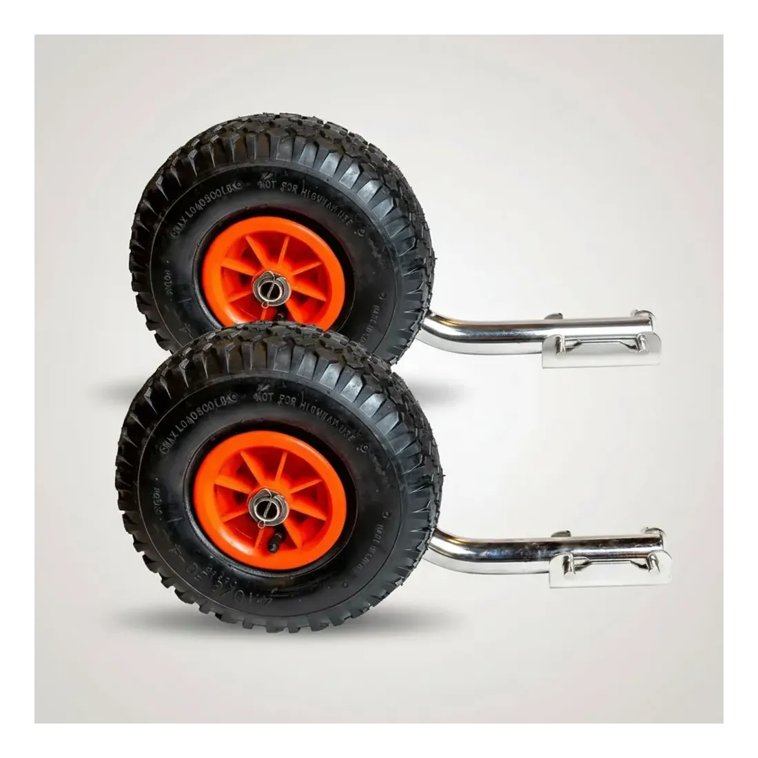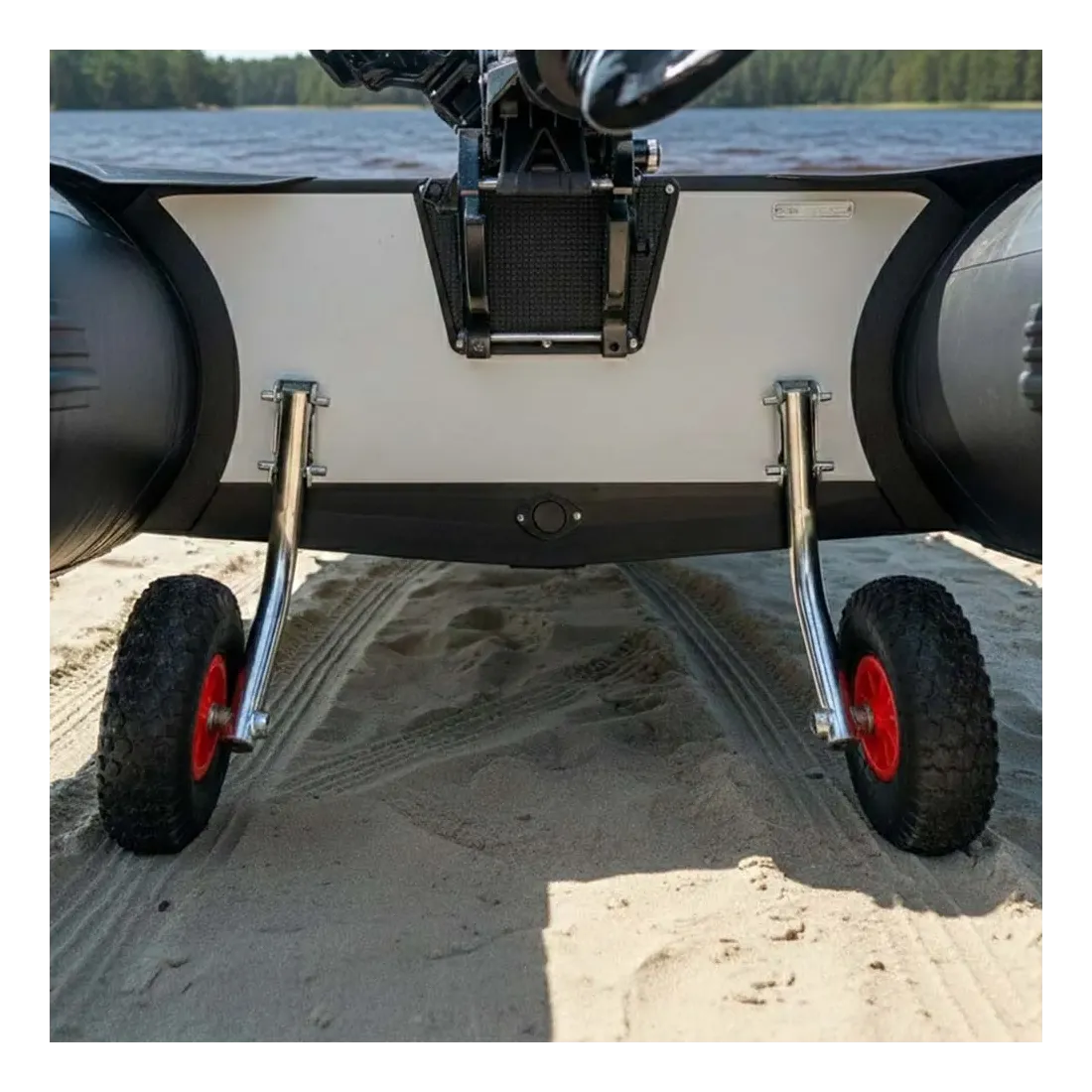 Rostfria löstagbara sjösättningshjul med stora luftfyllda däck för ojämn terräng eller sand.