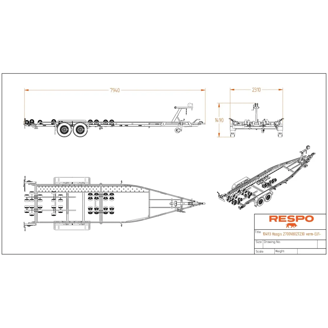 Respo Multiroller 2700kg, 80 Km/h båttrailer, båtar upp till 7.7m
