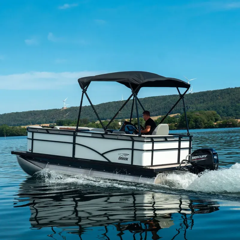 Örnvik 490P är Örnviks mindre modell i deras pontonbåts-serie. Båten har väldigt fina sjöegenskaper och är väldigt lätthanterlig. Detta är den perfekta båten för att ta med familj eller vänner ut på en kvällstur eller en heldag i solen. Med massvis av sittytor så behöver man inte vara orolig för att behöva trängas.